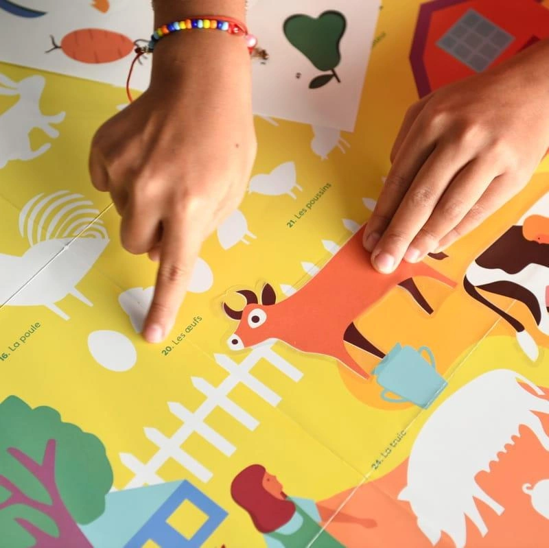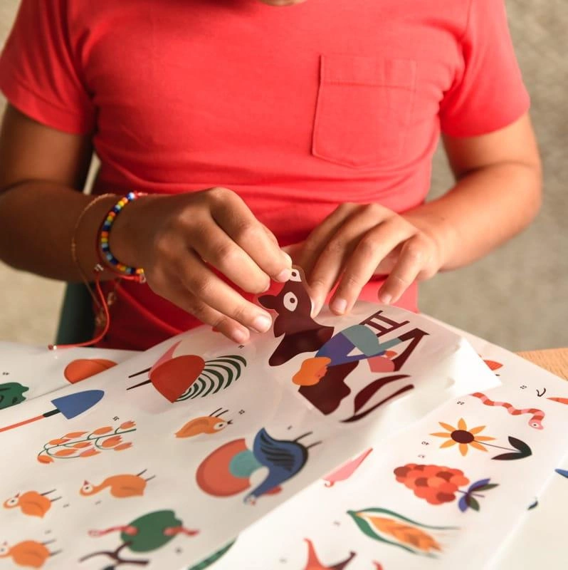języku angielskim). Dziecko wybiera, którą stronę chce wykleić.