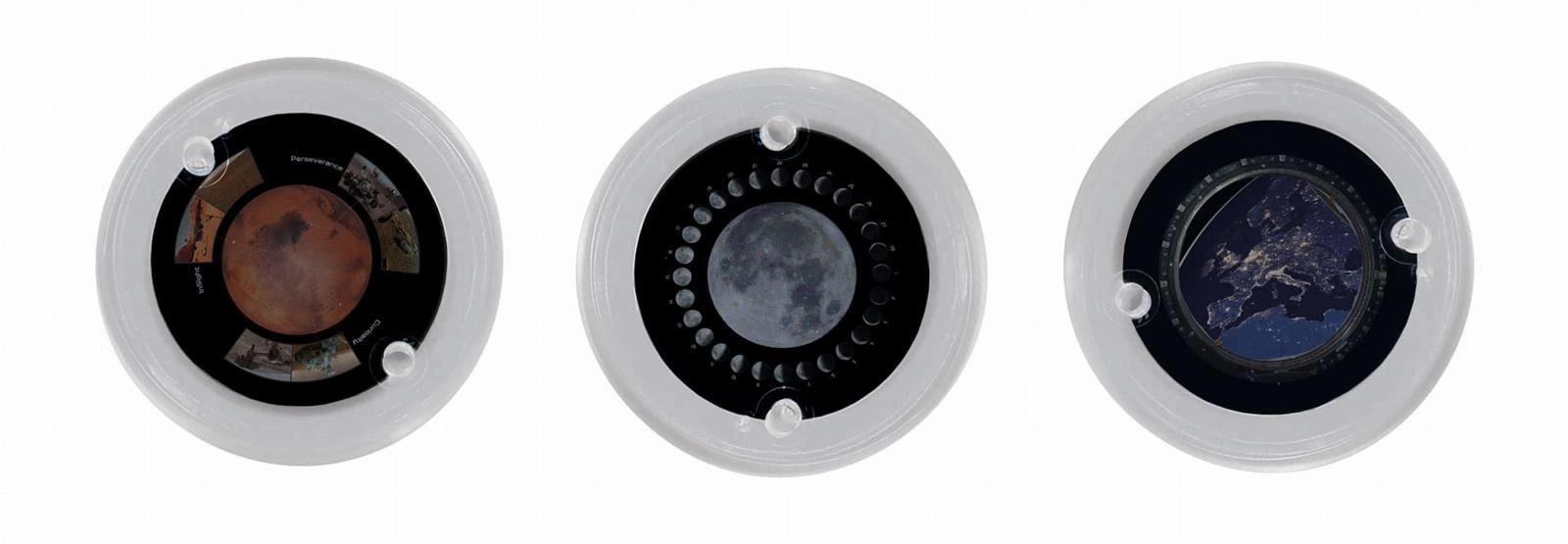 W zestawie znajdują się 3 krążki przedstawiające następujące obrazki: