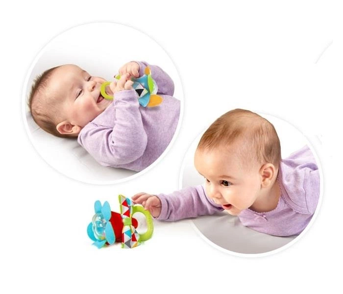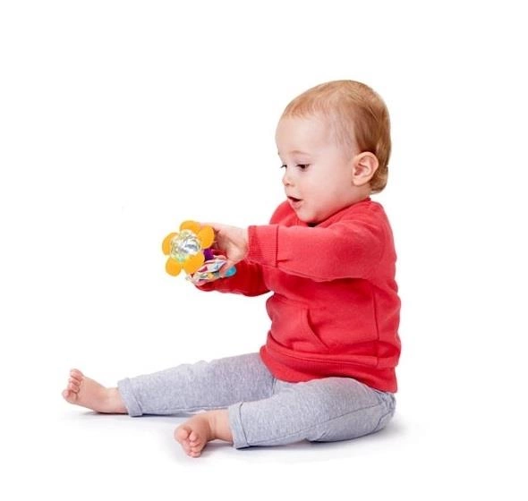 Pierwszy przyjaciel Malucha! Grzechotka przypominająca kwiatuszka posiada wewnątrz grzechoczące koraliki, różnorodne tekstury oraz kolorowy materiał, które stymulują zmysły malucha. Gumowy uchwyt zabawki doskonale sprawdzi się podczas ząbkowania. Zabawka jest łatwa do schwytania przez małe rączki bobasa. Posiada także krążek, który pomoże w zawieszeniu jej w dowolym miejscu wózka, przy łóżeczku na macie edukacyjnej lub gdziekolwiek chcesz. Idealna na pierwszy prezent.
