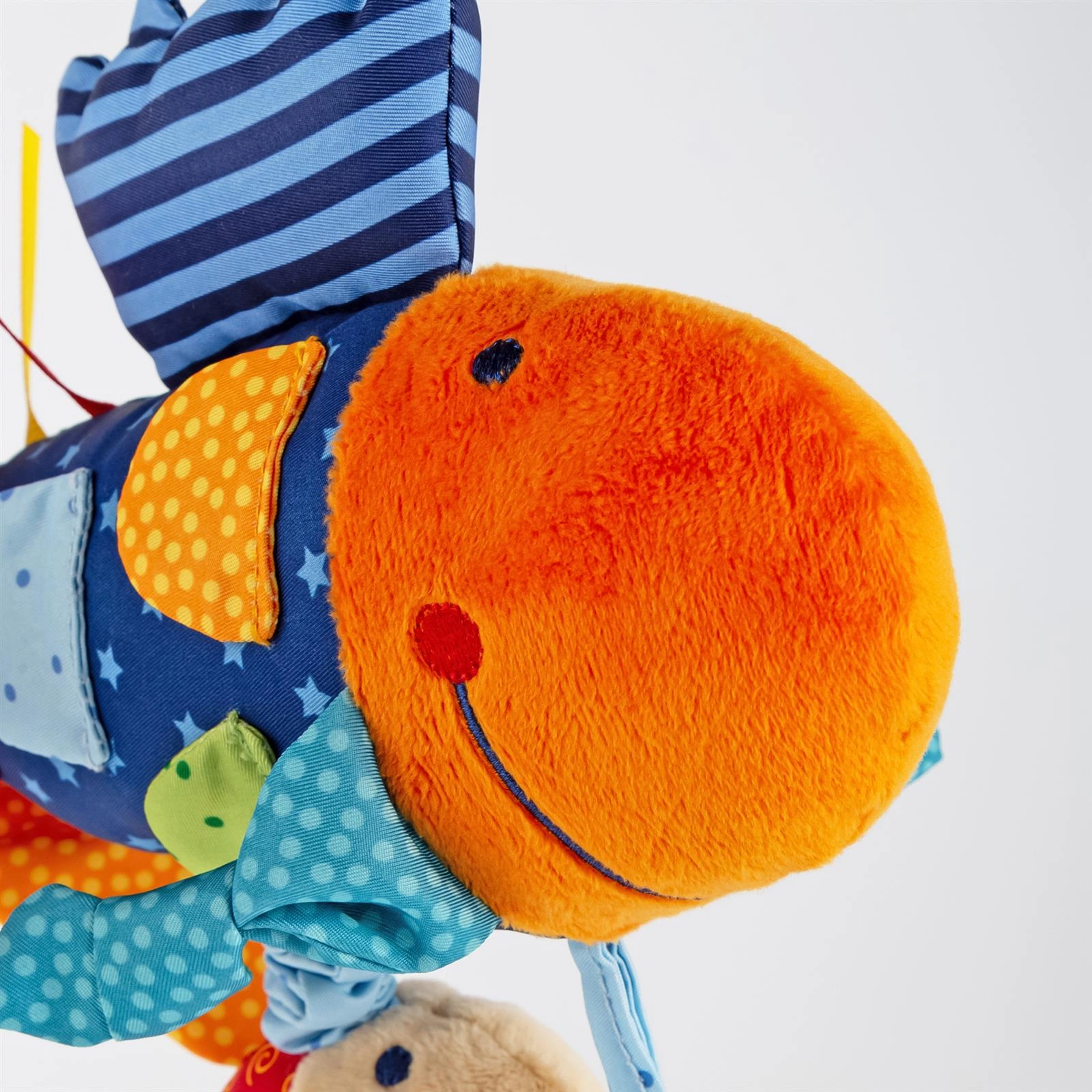 - Wszyta folia szeleszcząca, grzechotki, piszczałka i gryzaczek zapewniają atrakcyjne bodźce.