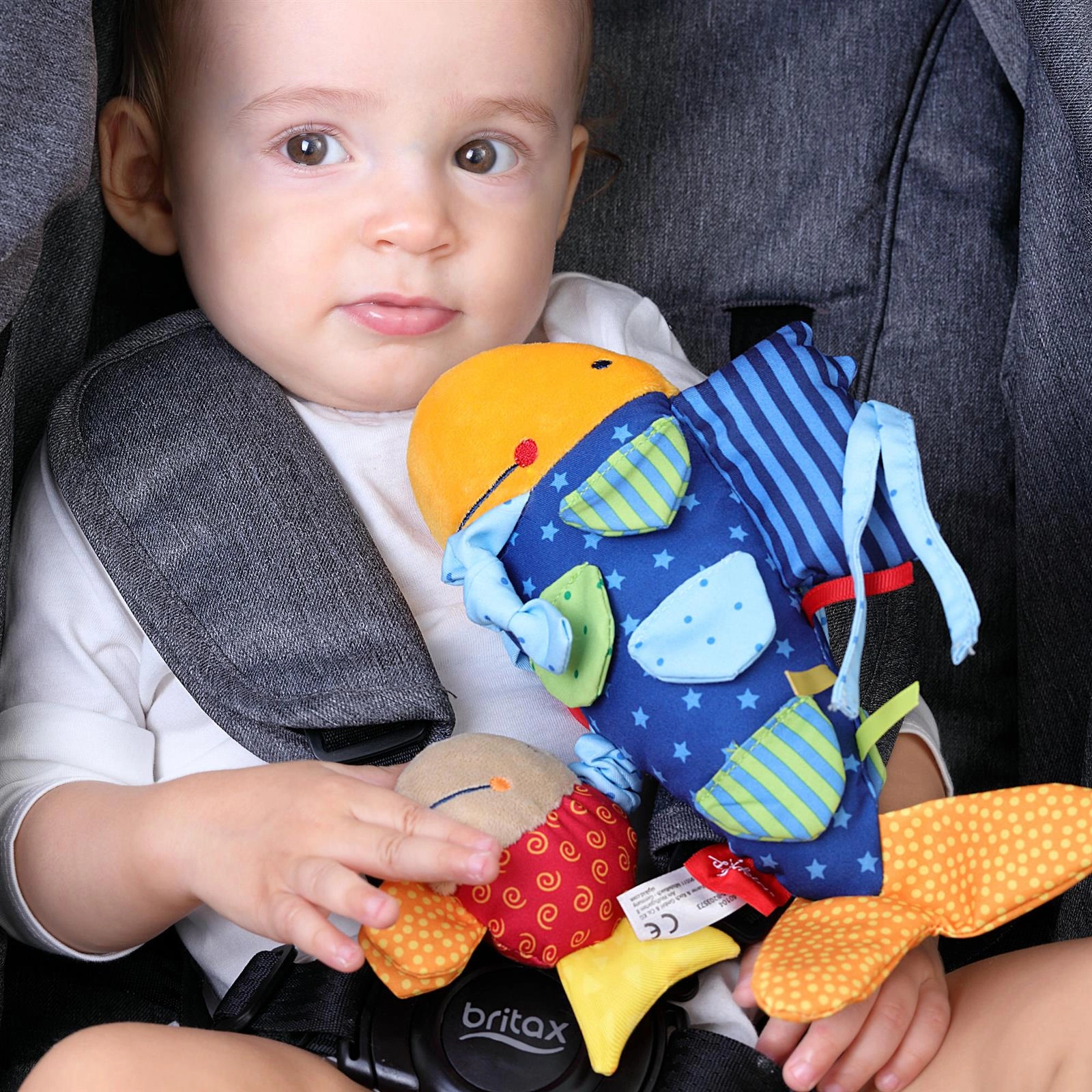 Ta rozwojowa zabawka zapobiega nudzie i zachęca dzieci do aktywnego chwytania, czucia, słuchania i odkrywania związku przyczynowo-skutkowego. Rybki zapraszają do eksplorowania, są łatwe do uchwycenia i trzymania przez małe rączki. Maskotka jest również doskonałą pierwszą przytulanką.