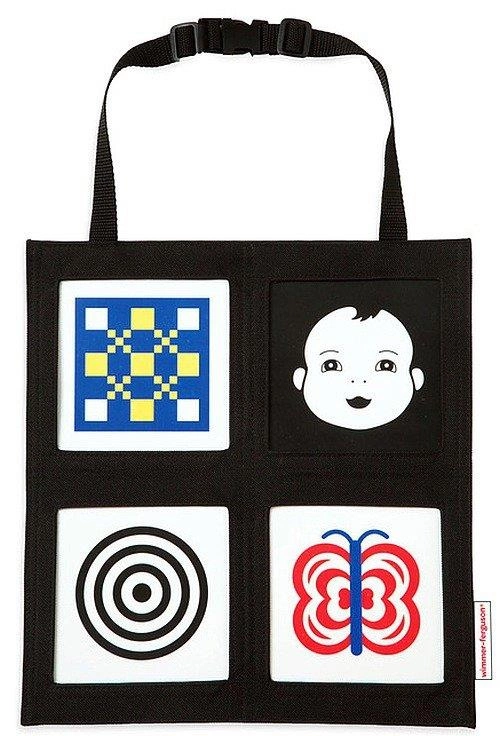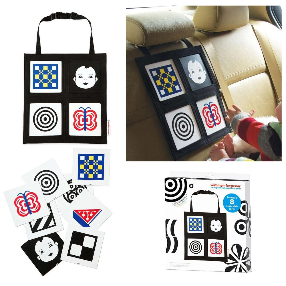Miękka, "mini galeria" z serii Wimmer Ferguson marki Manhattan Toy idealnie sprawdzi się podczas podróży autem. 8 kontrastowych obrazków wykonanych z grubej tektury w łatwy sposób wymienisz w nylonowej ramce zapinanej na regulowany pasek. Przypnij ramkę do przedniej lub tylnej części fotela samochodowego i pozwól dziecku na poznawanie kształtów i kolorów. Każda z tabliczek posiada dodatkowo oznakowanie wiekowe umożliwiające jej dobór do prawidłowego rozwoju dziecka. Z mini galerią Manhattan Toy rozwój wizualny Twojego dziecka stanie się jeszcze łatwiejszy. Dzięki niewielkim rozmiarom zabawkę w łatwy sposób złożysz i przechowasz, a nylonowy materiał pozwala na łatwe utrzymanie jej w czystości.