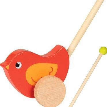 Zabawka do pchania Czerwony wróbelek 54887-Goki, zabawki drewniane