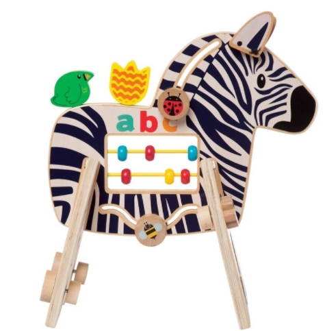 Edukacyjna zabawka dla dzieci w postaci uroczej zebry w paski Manhattan Toy została wykonana z wysokiej jakości drewna, dzięki czemu posłuży dzieciom przez długie lata.
