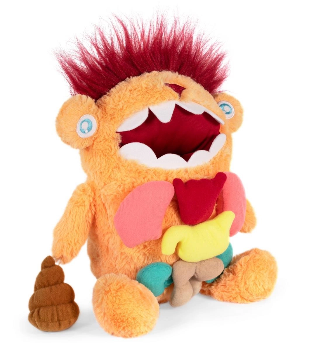 Postać do odkrywania niespodzianek w naszym ciele Dzieci będą miały niekończącą się zabawę odkrywając niesamowite rzeczy, które my, ludzie, mamy w naszych ciałach. Ten fantastyczny, miękki w dotyku, uroczy mały potworek ma 5 jasno kolorowych organów z miękkiej tkaniny: serce, płuca, nerki, żołądek i jelita. Należy wyciągnąć je z buzi stworka i umieścić w odpowiednim miejscu na jego ciele. Uważaj jednak! Można również wyciągnąć nieprzyjemną niespodziankę! Opcjonalnie możesz również skorzystać z naszej aplikacji miniland grow&fun, gdzie dzieci zobaczą narządy w powiększeniu, posłuchają ich odgłosów i poznają ich rolę w naszym ciele. 5 miękkich organów Ten uroczy, duży stworek maskotka jest posiada 5 narządów wykonanych z miękkiego, gładkiego materiału w jasnych, przyjaznych kolorach: serce, płuca, nerki, żołądek, jelita, a nawet kupę! Wszystkie organy w jego brzuchu Organy wewnątrz pstworka muszą zostać wyjęte bez patrzenia, a następnie ułożone na jego brzuchu na właściwej pozycji. Jaki będzie następne? Rzeczywista wielkość Dzięki aplikacji Miniland dzieci mogą skanować karty do zabawy, które posiadają unikalny kod QR (kart są dołączone do zabawki). Za pomocą telefonu lub tabletu skanuje się kod QR - w ten sposób dzieci mogą kontynuować naukę o danych narządach i ludzkim ciele. Zabawa i nauka w jednym Dzieci nie będą chciały zakończyć! zabawy Będą się świetnie bawić, próbując znaleźć narządy i uniknąć nieprzyjemnej niespodzianki ukrytej w tym uroczym stworku.
