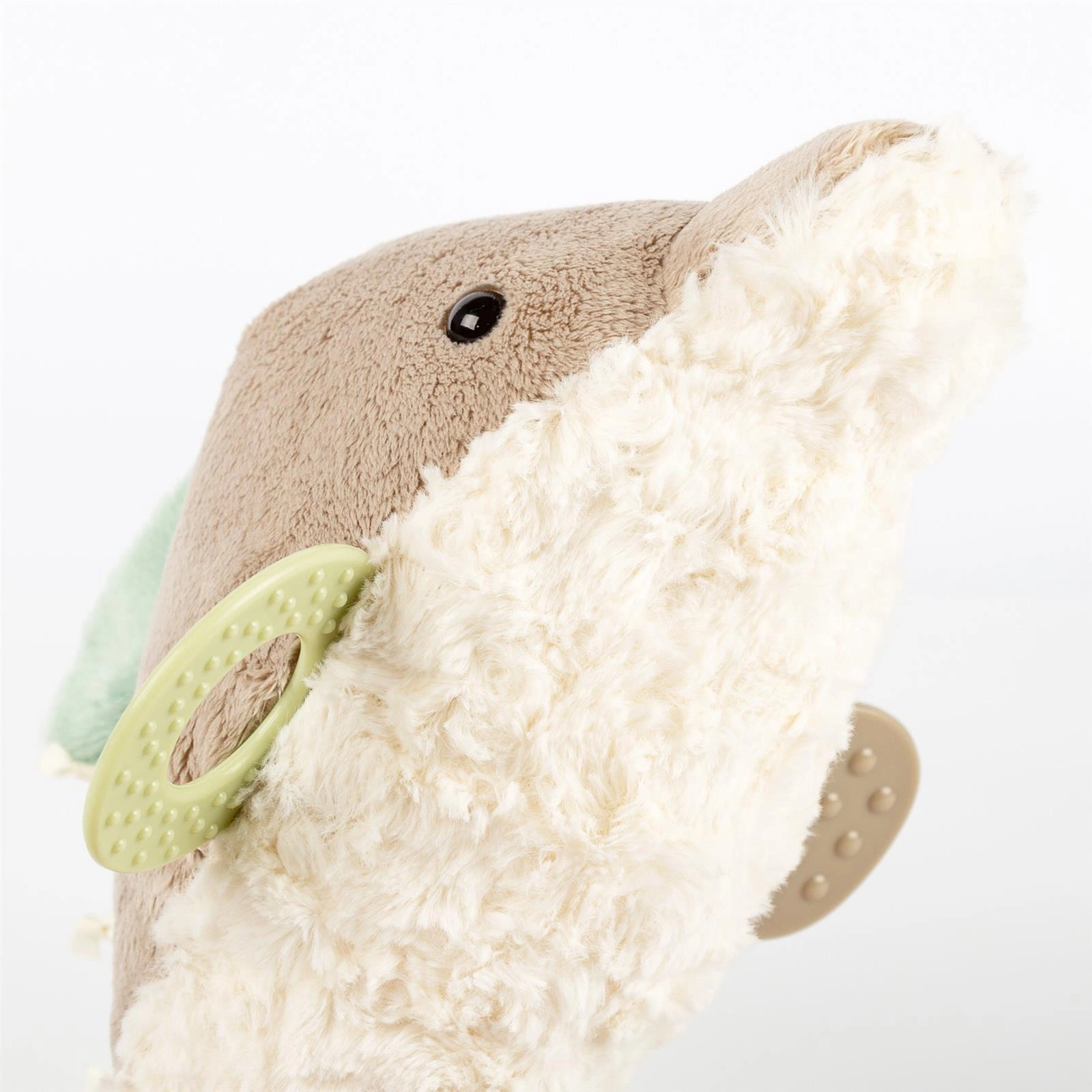 Ta rozwojowa zabawka zapobiega nudzie i zachęca dzieci do aktywnego chwytania, czucia, słuchania i odkrywania związku przyczynowo-skutkowego. Delfin zaprasza do eksplorowania, jest łatwy do uchwycenia i trzymania przez małe rączki. Maskotka jest również doskonałą pierwszą przytulanką.