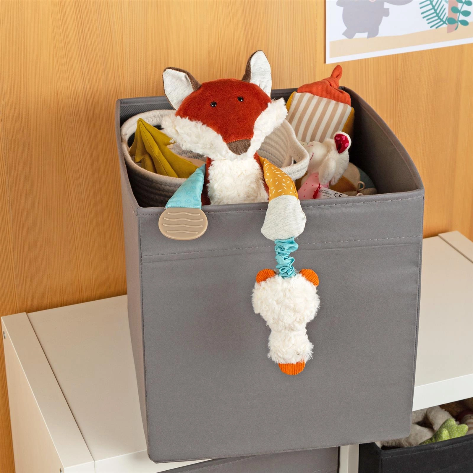 Ta rozwojowa zabawka zapobiega nudzie i zachęca dzieci do aktywnego chwytania, czucia i słuchania. Lisek zaprasza do eksplorowania, jest łatwy do uchwycenia i trzymania przez małe rączki. Maskotka jest również doskonałą pierwszą przytulanką.