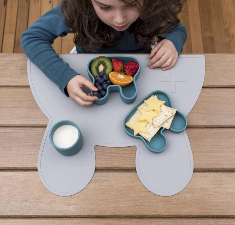 Wykonany z wysokiej jakości nietoksycznego silikonu spożywczego zestaw składa się z miski i pokrywki w kształcie Króliczka zabezpieczonej elastycznym silikonowym paskiem, który utrzymuje obie części razem. Napełnij pojemnik zdrowymi smakołykami i odpieraj na spacerze pokusy kupienia słodkich niezdrowych przekąsek dla Twojego Dziecka. Silikonowy Króliczek stanie się ulubionym pojemniczkiem Twojego Dziecka - jest przyjemny w dotyku i jedzenie z niego jest świetną zabawą. Jest również praktyczny - po skończonym posiłku możesz go po prostu wrzucić do zmywarki.