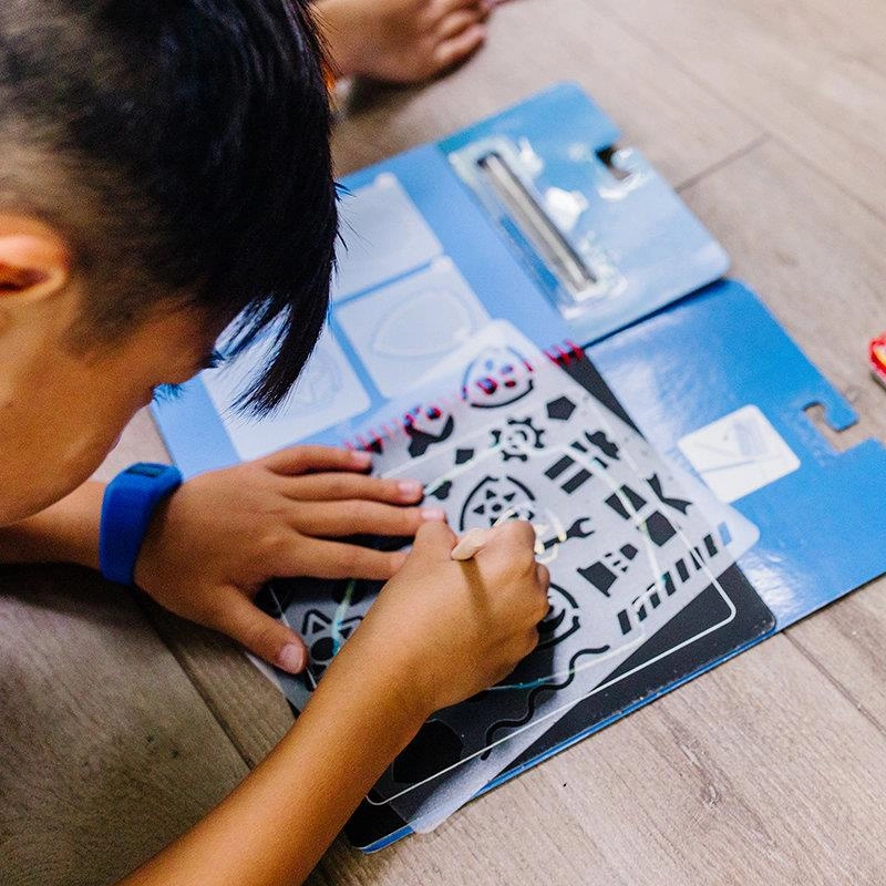 • Dołączony szablon do odrysowywania pozwala personalizować obrazki