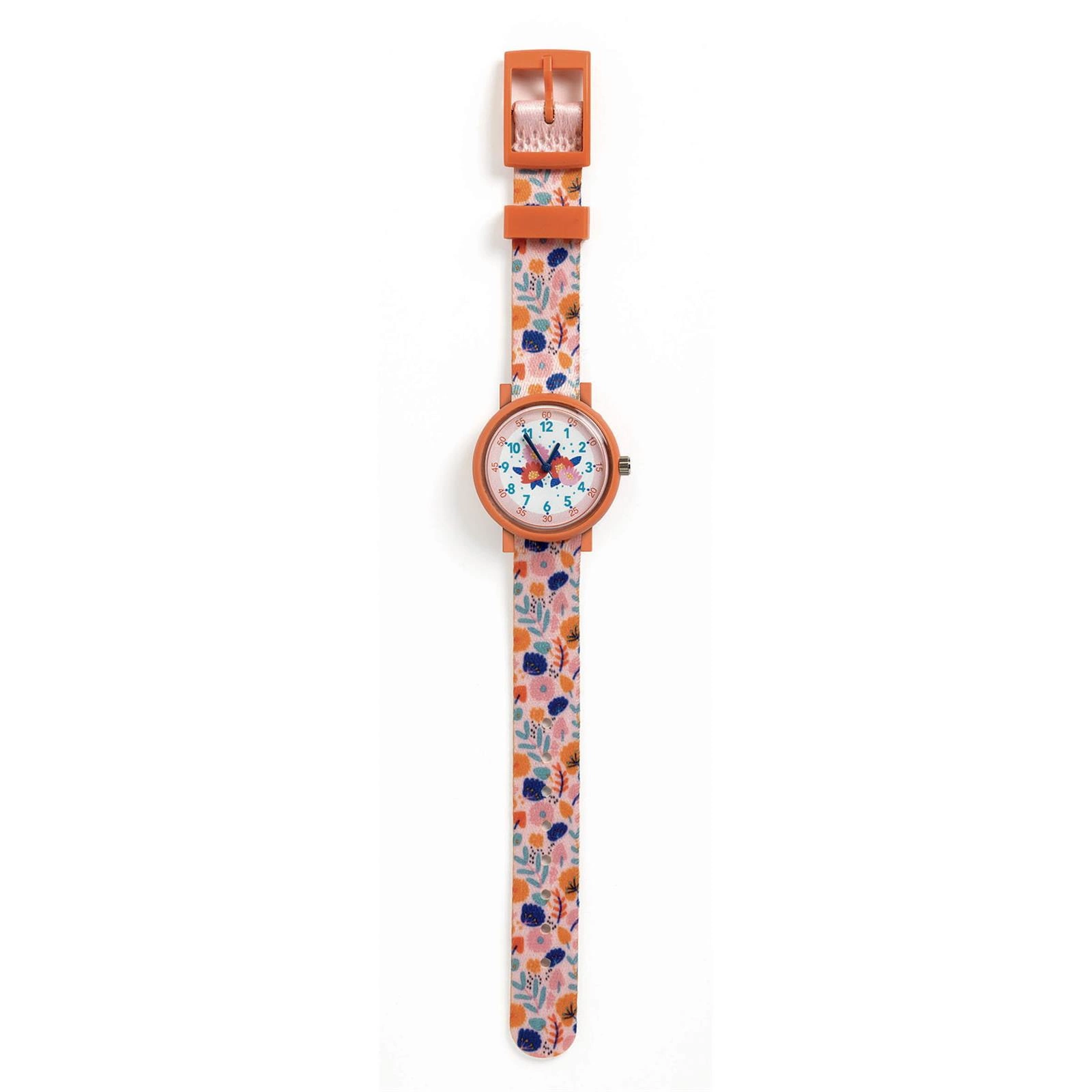 Mały zegarek dziecięcy na tekstylnym pasku będzie pasował na każdą mała rękę. Zegarek ma wielokolorowy pasek i tarczę z numerami wskazującymi godziny iminuty w odstępach 5,10,15,20 ....