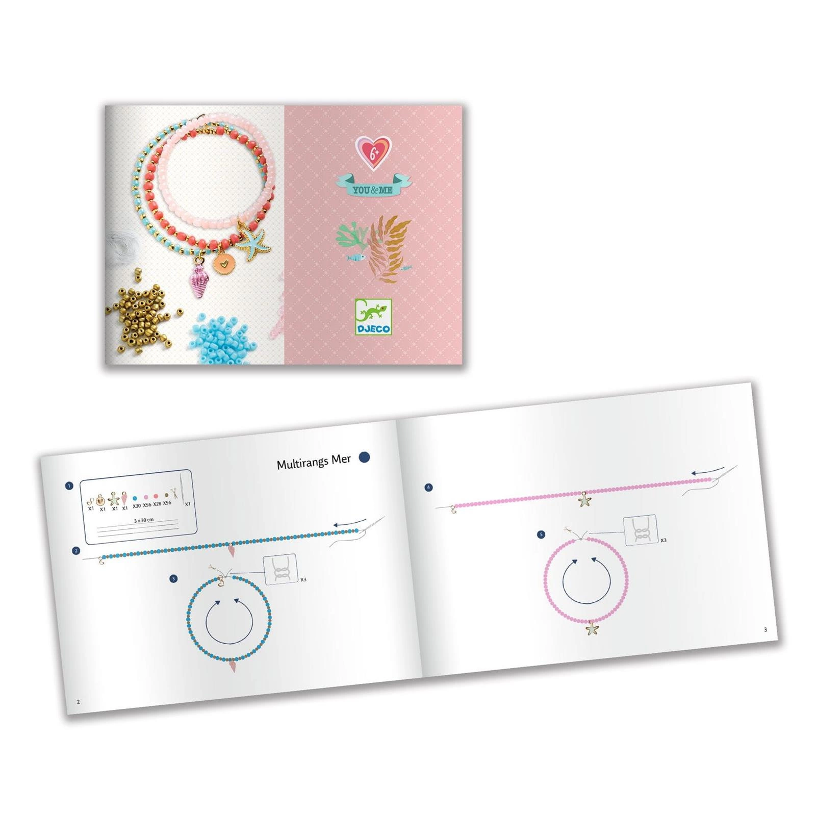 Zawartość: 500 koralików, 8 charmsów, 2 metry elastycznej gumki, 2 igły, 1 instrukcja, 2 woreczki z organzy, 2 ilustrowane kartki