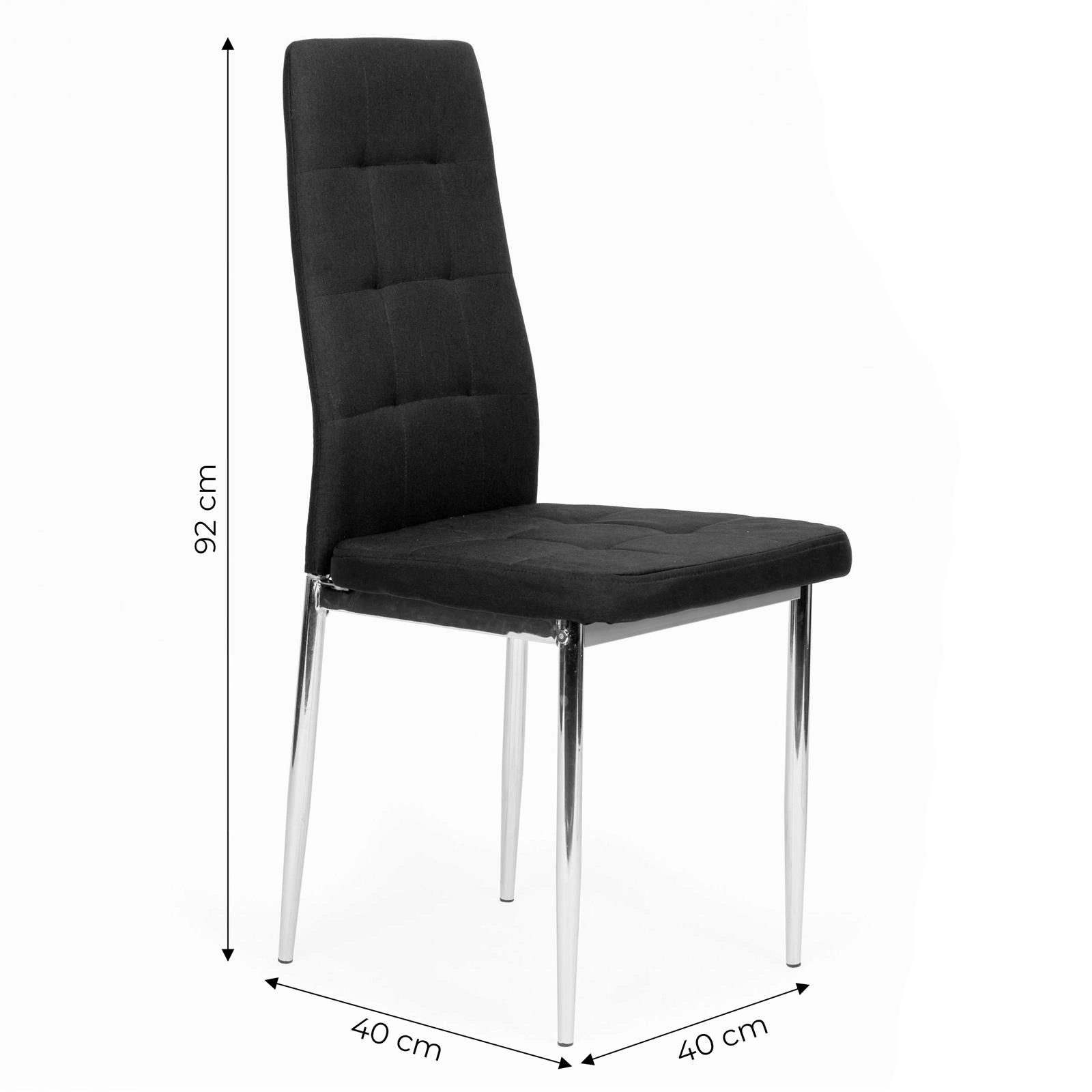 Zestaw 4 krzeseł do salonu jadalni proste pikowane krzesło chromowane nogi czarne