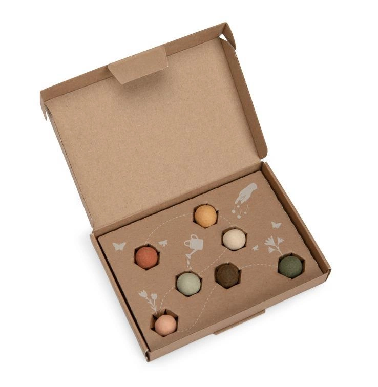 Zestaw 7 kul z nasionami pozwalający wyhodować piękne polne kwiaty w ogrodzie. Najlepiej wysiewać je w kwietniu lub maju - to idealny czas, aby cieszyć się nimi tak długo, jak to możliwe. Kule wykonane są z gliny, w której umieszczone są nasionka. Kwiaty będą się cieszyć powodzeniem wśród pszczół, motyli i innych zapylaczy.