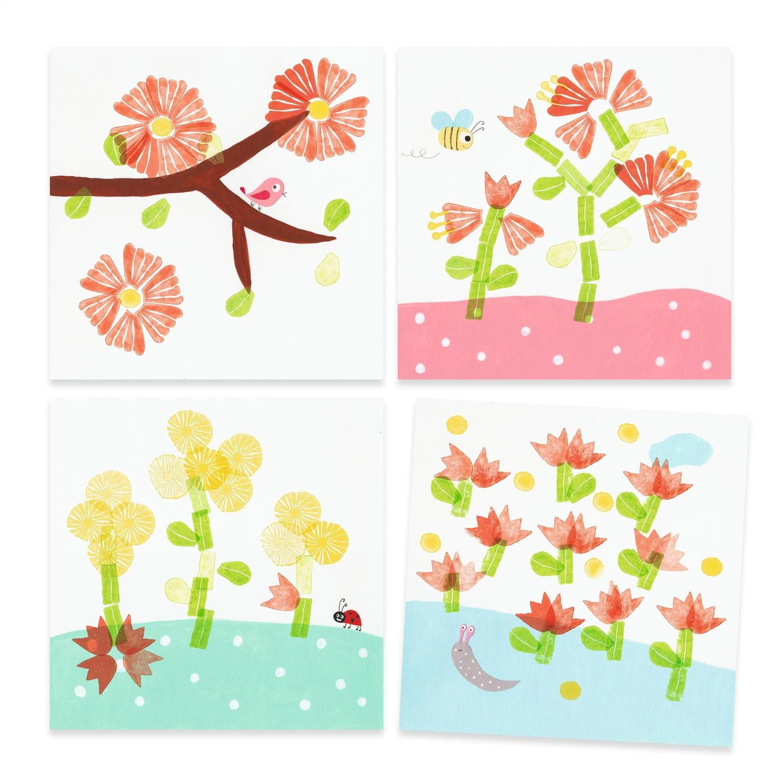 Zawartość: 16 ilustrowanych kart do ozdobienia, 3 duże poduszki z atramentem (żółtym, zielonym i czerwonym), 7 stempelków, instrukcja krok po kroku.