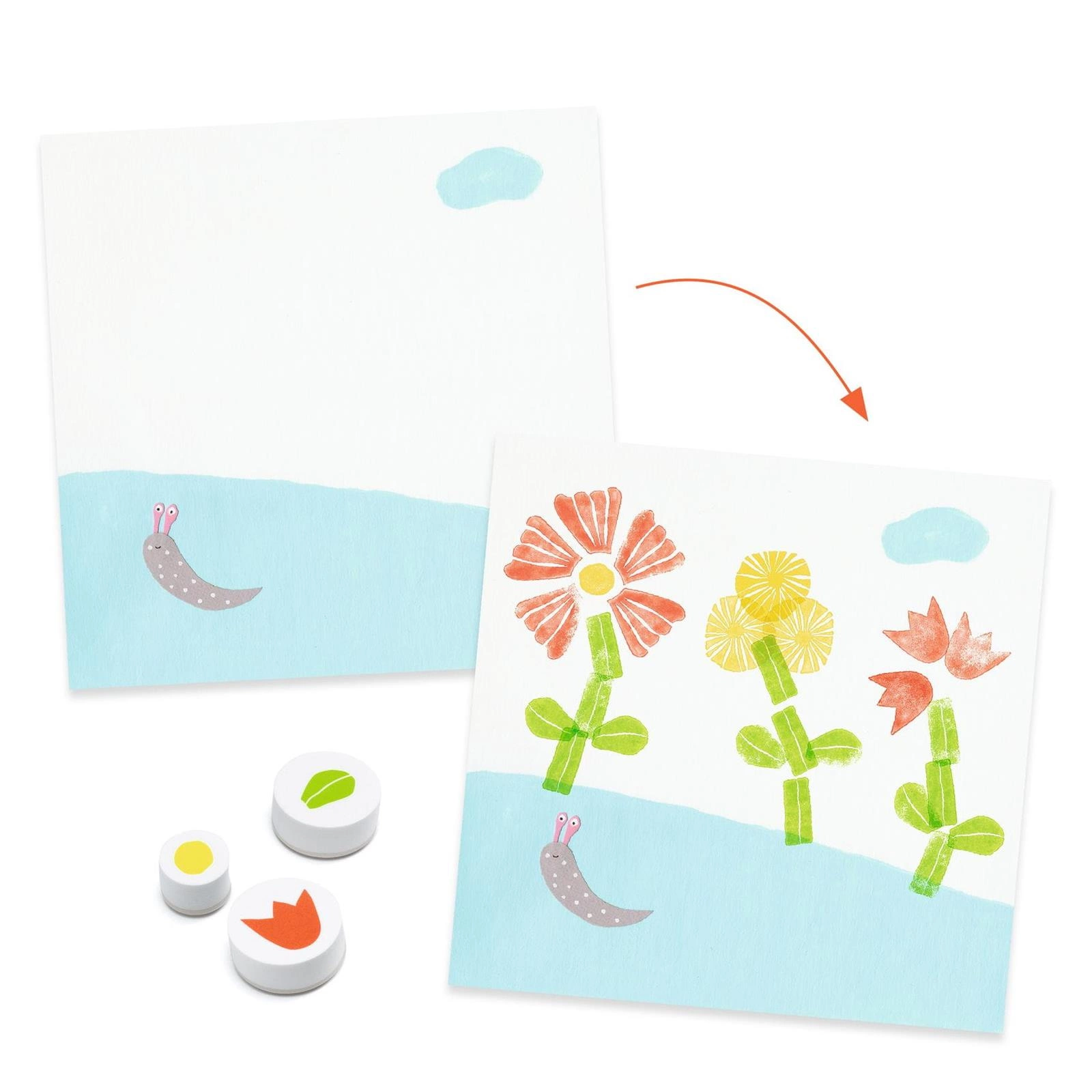 Zestaw artystyczny do tworzenia obrazów za pomocą załączonych stempelków. Wystarczy odcisnąć stempelek na poduszce z atramentem i zacząć tworzyć ilustracje. Zabawka rozwija zdolności manualne i kreatywność. Zabawka wielokrotnego użytku: za każdym razem można stworzyć inne dzieło. Każdy stempelek posiada wzór w określonym kolorze; pomaga to utrzymać narzędzia w czystości. Atrament jest łatwo zmywalny. Poszczególne elementy wykonane są z papieru i kartonu posiadającego certyfikat FSC®.