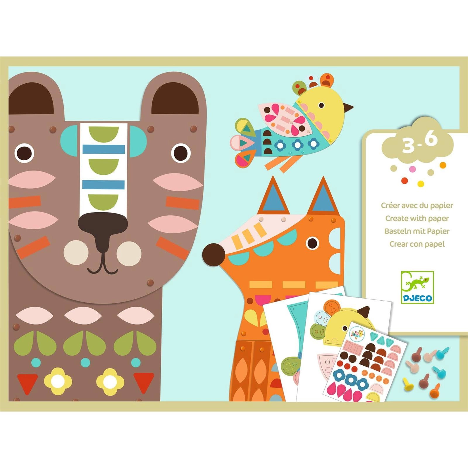 Zestaw artystyczny składający się z 3 arkuszy do zrobienia kolaży. Szablony zwierząt do ozdobienia są imponujących rozmiarów: aż do 50 cm wysokości! Zadanie polega na przyklejeniu odpowiednich naklejek, a następnie złożeniu wszystkich części zwierząt za pomocą przypinek, aby uzyskać niedźwiedzia (50 cm), lisa (40 cm) i ptaka (28 cm). Do wyboru ponad 200 dużych naklejek! Zestaw wykonany z papieru i kartonu posiadającego certyfikat FSC®.