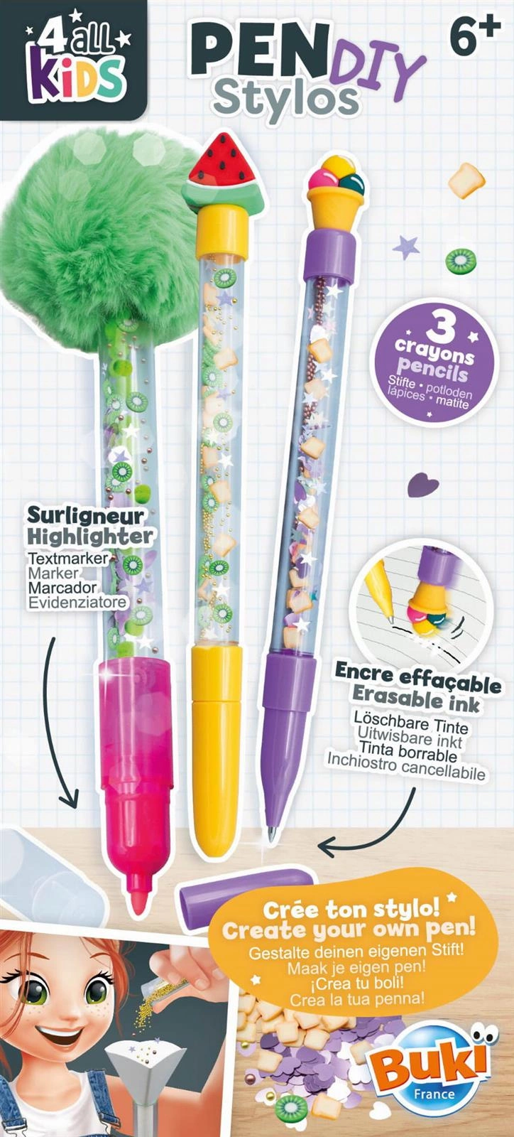 Zestaw Zrób to sam SŁODKOŚCI to zadanie kreatywne polegające na ozdobieniu i złożeniu 2 długopisów i mazaka. Unikatowe dzieła będą prawdziwą ozdobą dziecięcego piórnika. Zadanie polega na uzupełnieniu przyborów różnymi dekoracjami, figurkami i pomponami.