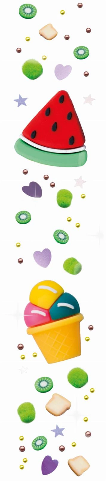 Długopisy posiadają zmywalne tusze, które można wymazać załączonymi figurkami w kształcie arbuza i lodów. W zestawie znajdują sie dwa rodzaje zapasowych wkładów (niebieskie i czarne).