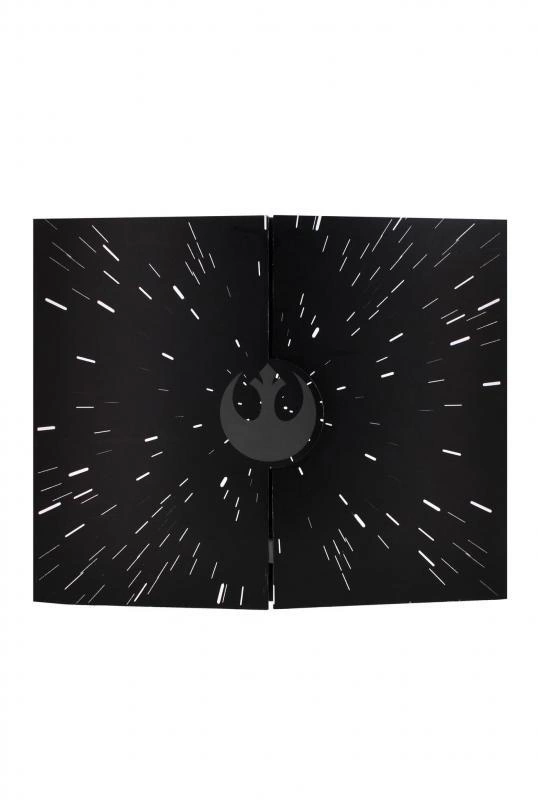 Kapitan Sokoła Han Solo ucieka z Cloud City przed odziałami Szturmowców; bohaterska księżniczka Leia Organa, ryzykant Lando Calrissian i nieliczni bardziej lojalni, mili i odważni niż nasz ulubiony Wookiee Chewbacca lub Chewie. Wraz z czterema miniaturowymi Sokołami Millenium i mieczami świetlnymi - lub spodkami i łyżeczkami - trzymaj kubki w dowolny sposób, podziwiając 360-stopniową kalkomanię najbardziej nieustraszonych bohaterów Gwiezdnych Wojen.
