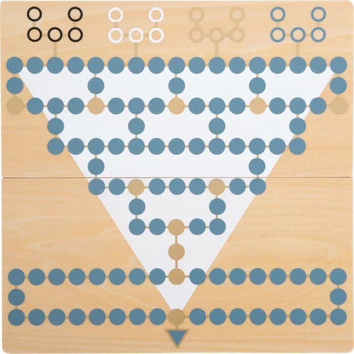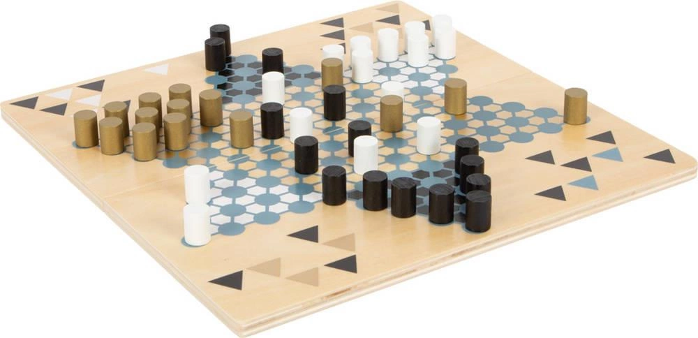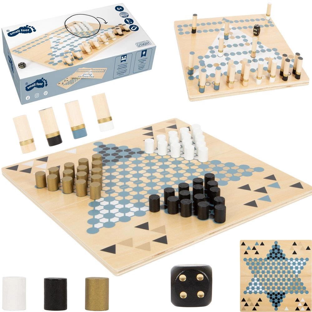 Zestaw drewnianych gier planszowych Halma i Malefiz Gold Edition Small Foot to wspaniała rozrywka dla całej rodziny. Wykonana z drewna wysokiej jakości posłuży do zabawy przez długie lata dzieciństwa. Charakteryzuje się nowoczesną kolorystyką w odcieniach złota, szarego błękitu, bieli, czerni oraz naturalnego drewna. Dwustronna plansza do gry łączona za pomocą magnesów jest składana i łatwa do przechowywania. Halma, znana również jako chińskie warcaby to sześcioramienna gwiazda, łatwa do nauczenia i dająca dużo frajdy, w którą może zagrać od 4 do 6 graczy. Malefiz to gra, której celem jest ustawienie barykad, wyrzucanie przeciwników i strategiczne znalezienie najlepszej drogi do celu końcowego, nawet jeśli przeciwnicy mogą stanąć Ci na drodze. Elementy gry Halma mogą również służyć jako barykady dla Malefiz. Urozmaicanie wolnego czasu pozwala na poszerzanie horyzontów u naszych pociech, poprzez zachęcanie ich do różnych aktywności mają szansę na odkrywanie swoich talentów oraz zdobywania nowych umiejętności. Gra planszowa 2w1 Gold Edition Small Foot znakomicie komponuje się z pozostałymi grami pochodzącymi z tej kolekcji i może być wspaniałym pomysłem na prezent.