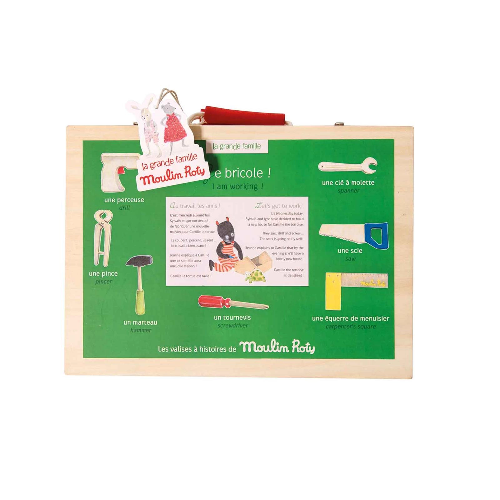 Skrzynka z narzędziami francuskiej formy Moulin Roty to idealny zestaw dla małych majsterkowiczów. Zestaw został dopasowany rozmiarem do małych rączek.