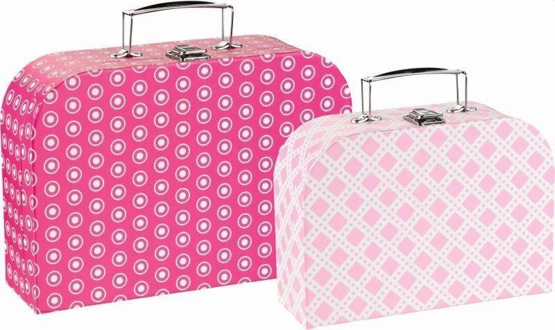 Walizki podróżne Goki doskonale sprawdzą się podczas zabawy oraz podróży. Są idealne, aby pomieścić ulubione zabawki, misie, lale, klocki czy samochodziki. Różowy kolor w delikatnej oraz ostrzejszej odsłonie dodaje im niesamowicie dużo uroku. W zestawie znajdują się dwie walizki, obie zapinane na zatrzask. Wykonane ze sztywnej tektury, wyposażone w wygodny uchwyt ułatwiający ich przenoszenie. Sprawdzą się jako idealny prezent dla małej księżniczki lubiącej podróże do krainy magii.