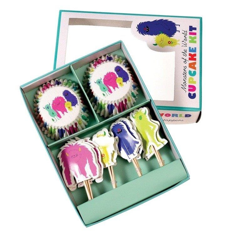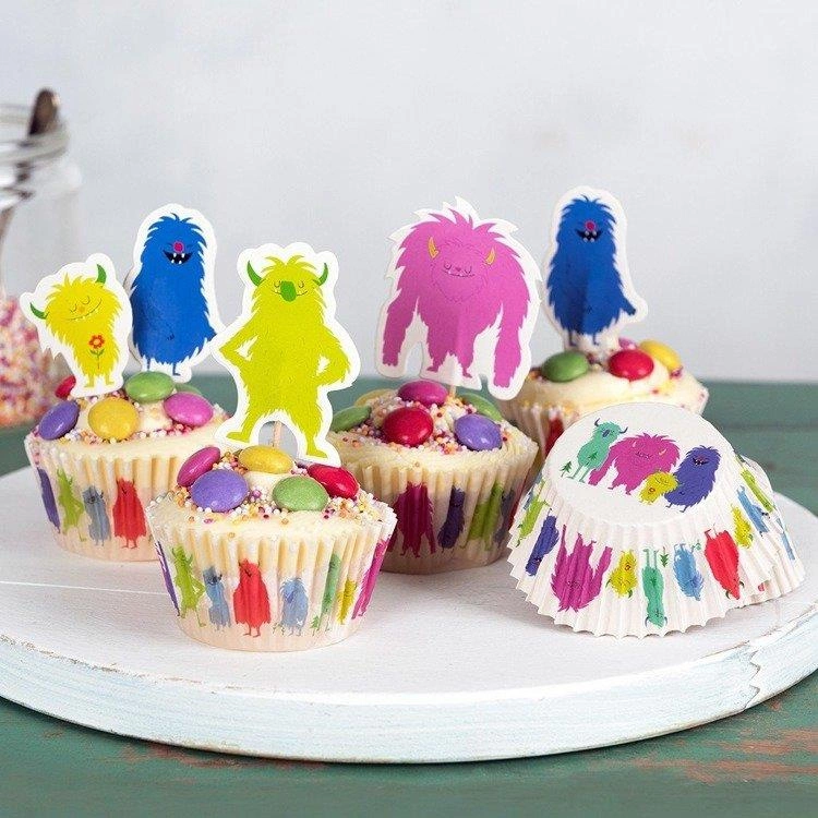 Zestaw: foremki do muffinek i ozdobne wykałaczki Potworki, Rex London