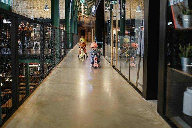 To idealne rozwiązanie dla aktywnych dzieci już od 1 roku życia, w dodatku „rośnie” razem z nimi. Wysokość siedziska można regulować, a jego najniższa pozycja dostosowana jest do wzrostu stawiających pierwsze kroki maluszków i znajduje się na wysokości 22,5 cm. Bez używania narzędzi, za pomocą jednego guzika można w kilka sekund zamienić pojazd w hulajnogę na 3 kołach – obrócone siedzisko staje się jej przednią ramą. Wystarczy jeszcze przenieść kierownicę (montowana na klik) i gotowe! Teraz także starszak może rozpocząć swoją scaterską przygodę. Hulajnoga jest doskonale zbalansowana i stabilna, komfortowa i na dodatek wyjątkowo bezpieczna. Wyposażona została w opatentowany, rewolucyjny system safety-pad – tj. specjalną szeroką podkładkę, umieszczoną w dole przedniej części, która zapobiega m. in. przewróceniu się na nierównym terenie czy utknięciu kół. Jej pozycję w razie potrzeby również można regulować.