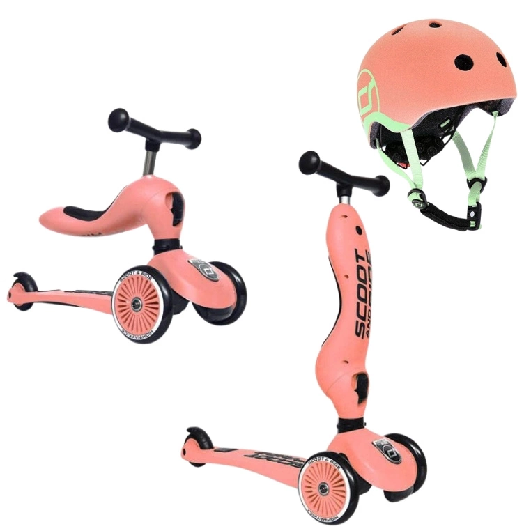 Zestaw Kask + SCOOTANDRIDE Highwaykick 1 2w1 Jeździk i hulajnoga 1-5 lat Peach + Kask XXS Peach