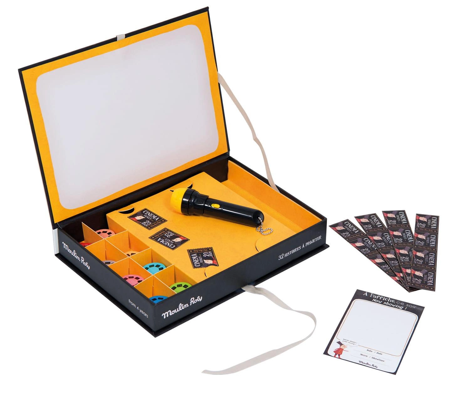 Opakowanie od wewnętrznej strony jest ekranem kinowym do projekcji filmów. Bardzo efektowne kartonowe opakowanie w stylu "retro" - doskonała zabawka na prezent.