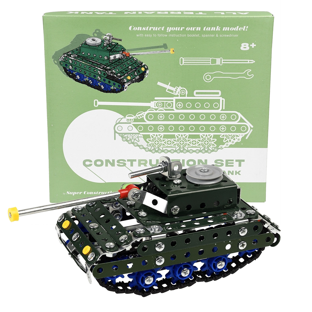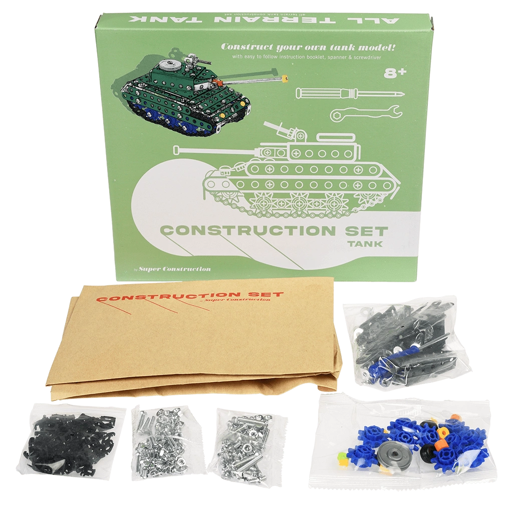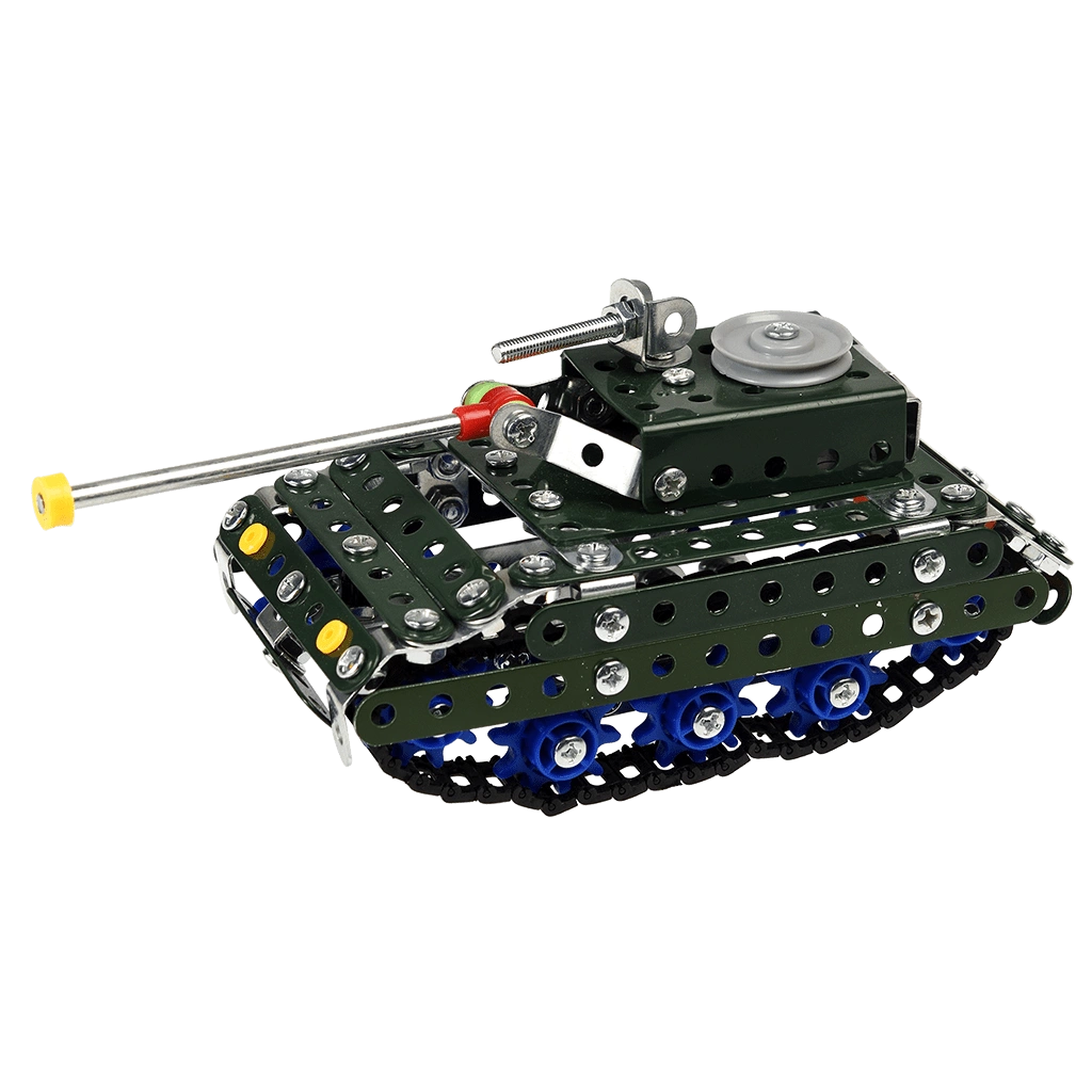 Kompletny zestaw konstrukcyjny Rex London pozwalający skręcić czołg. Przeznaczony dla dzieci w wieku szkolnym.