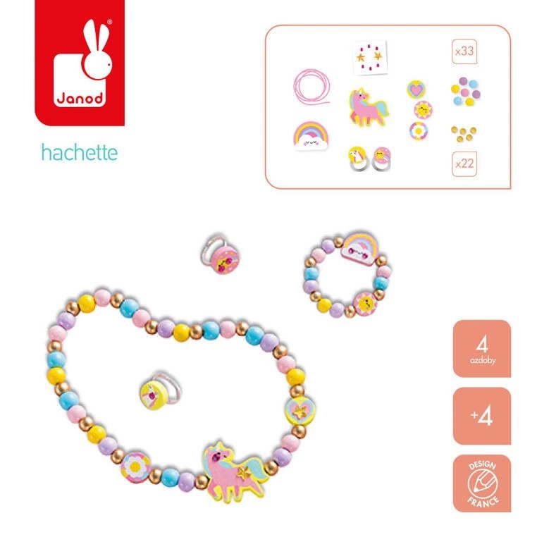 Zestaw kreatywny do tworzenia biżuterii z drewna Tęczowa kraina 4+, Janod