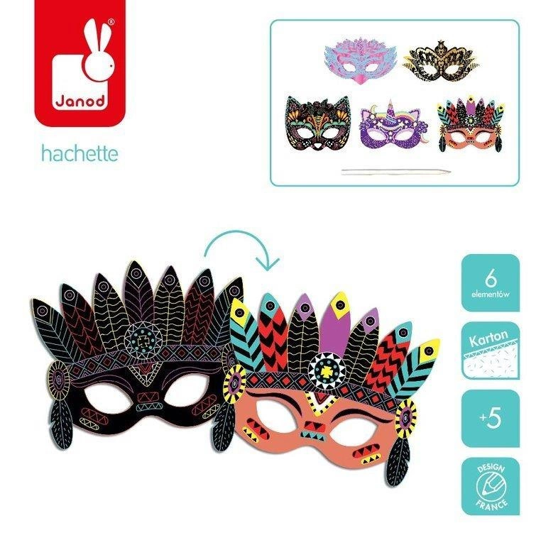 Zestaw kreatywny Do zdrapywania Maski karnawałowe 5+, Janod