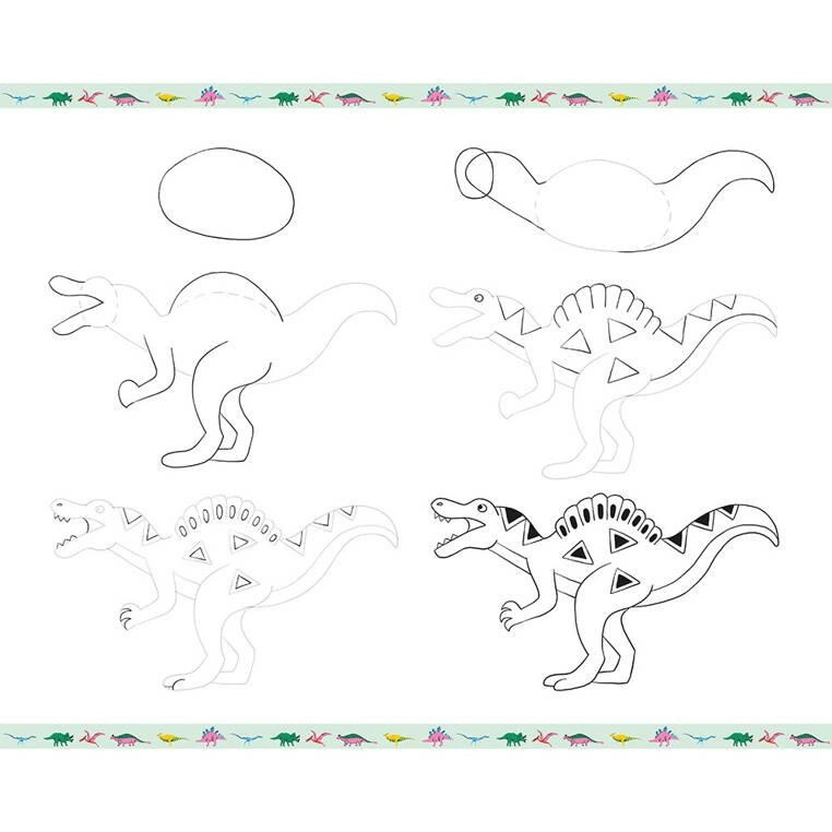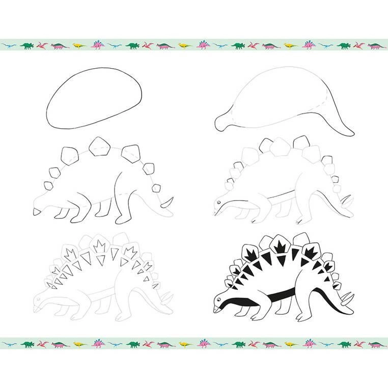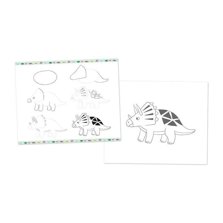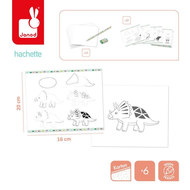 Zestaw kreatywny Rysowanie krok po kroku Dinozaury 20 rysunków 7+, Janod