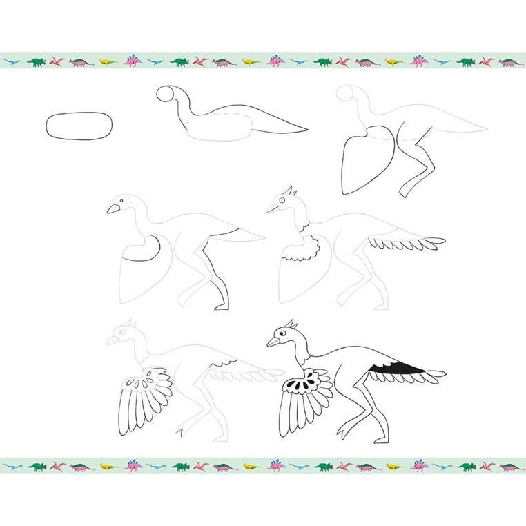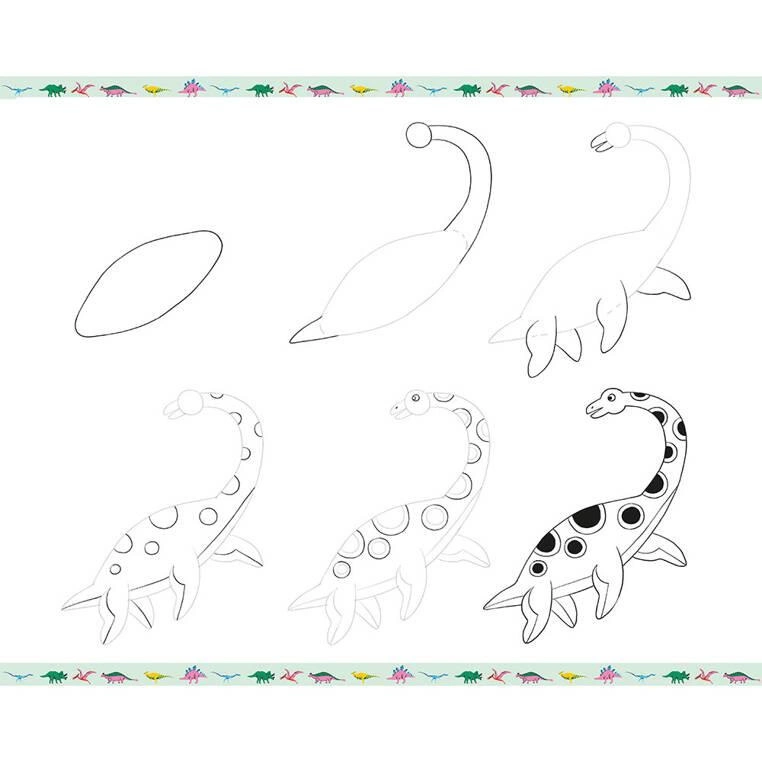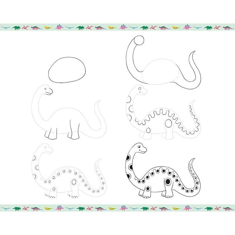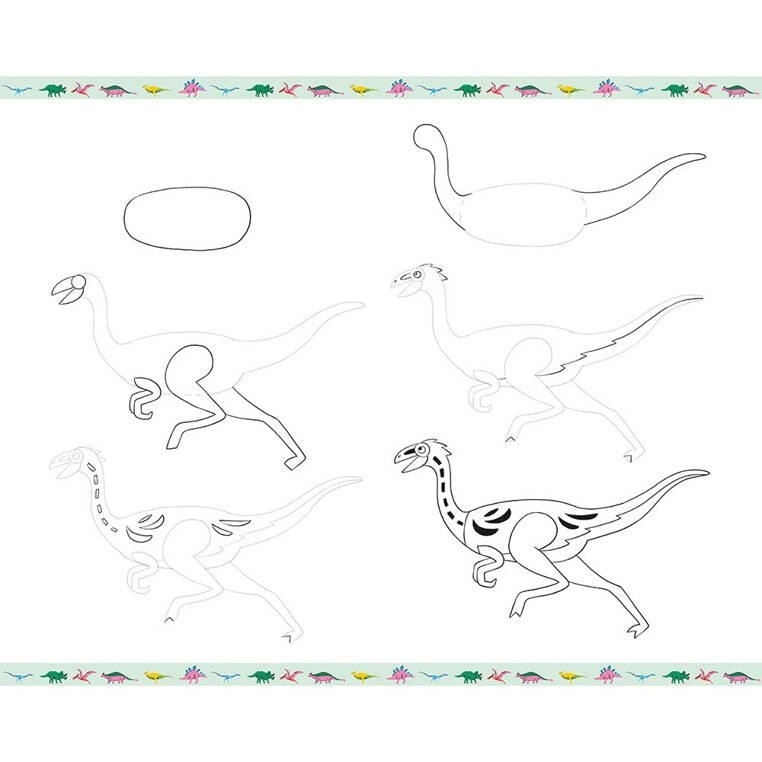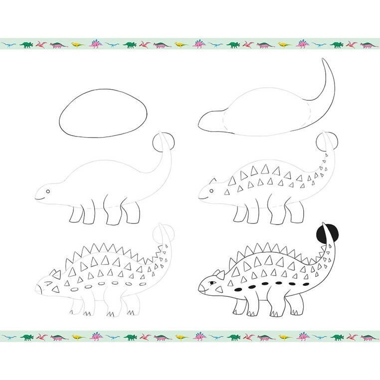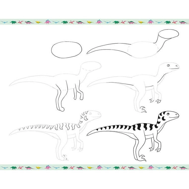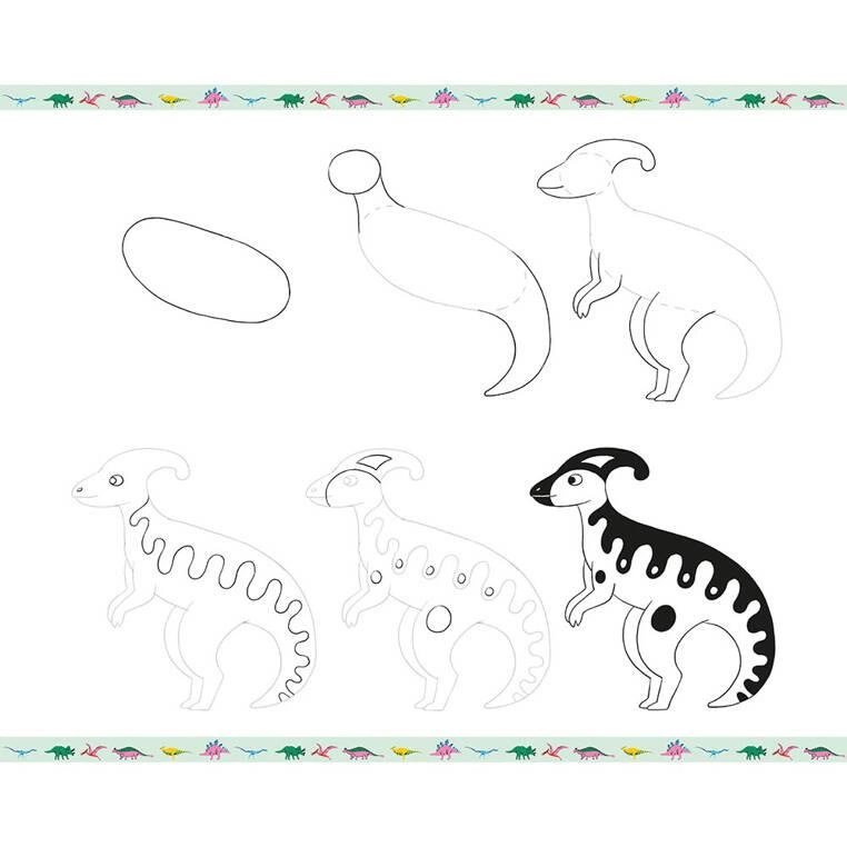 Zestaw kreatywny Rysowanie krok po kroku Dinozaury francuskiej marki JANOD zawiera 20 plansz ze wzorami do odwzorowania krok po kroku, 25 pustych kartek, ołówek HB i gumkę do zmazywania. Rysunki do odtworzenia przedstawiają różne gatunki dinozaurów. Nauka rysunku krok po kroku to wiele godzin angażującej i jednocześnie uspokajającej, wyciszającej zabawy, a gotowe obrazki staną się wspaniałą dekoracją dziecięcego pokoju i powodem do dumy dla małych artystów.