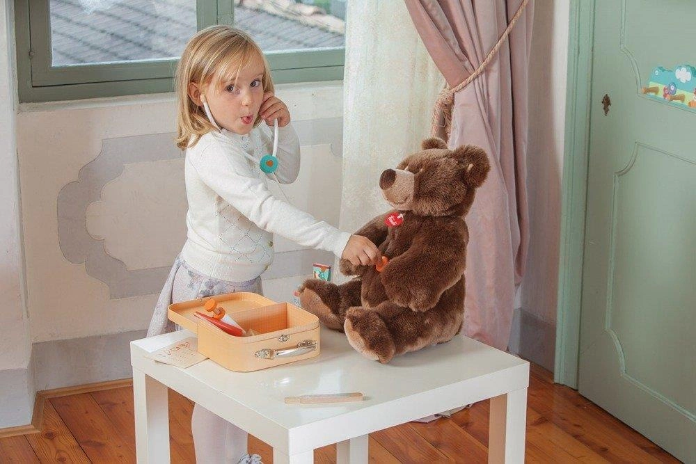 Zestaw lekarski marki Sevi pomoże dzieciom w odgrywaniu ról i wcielaniu się w postać lekarza. W pomarańczowej walizce mali lekarze znajdą wszystkie najpotrzebniejsze rzeczy potrzebne do podstawowych badań lekarskich.