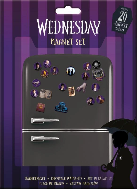 Dodaj odrobinę mrocznego uroku do swojego wnętrza dzięki naszemu zestawowi magnesów "Wednesday"! Ten zestaw zawiera 20 magnesów ozdobionych różnorodnymi motywami inspirowanymi środowiskiem mrocznej i tajemniczej Wednesday, idealnych do dekoracji lodówki, tablicy magnetycznej czy innego metalowego podłoża.