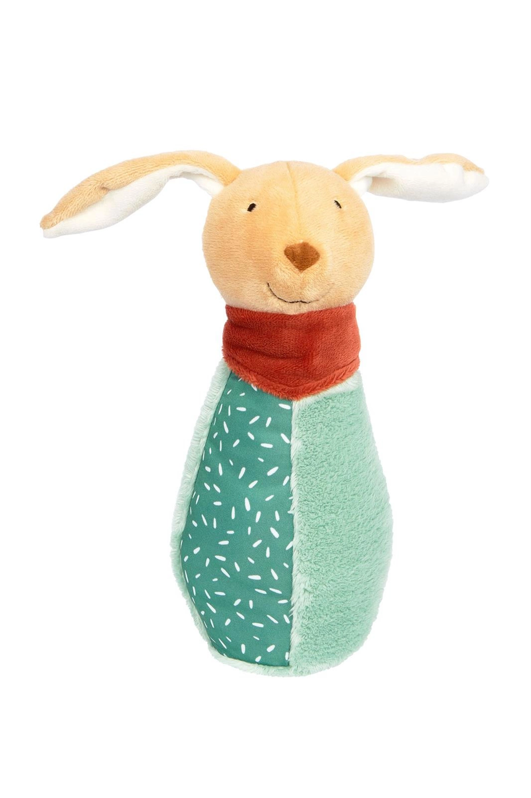 Ta rozwojowa zabawka zapobiega nudzie i zachęca dzieci do aktywnego chwytania, czucia i słuchania. Pluszowe kręgle i piłeczka zapraszają do eksplorowania, są łatwe do uchwycenia i trzymania przez małe rączki. Ich różnorodne tkaniny i przyjazne haftowane buźki zwierzątek oferują maluchom nowe wrażenia wizualne i dotykowe.