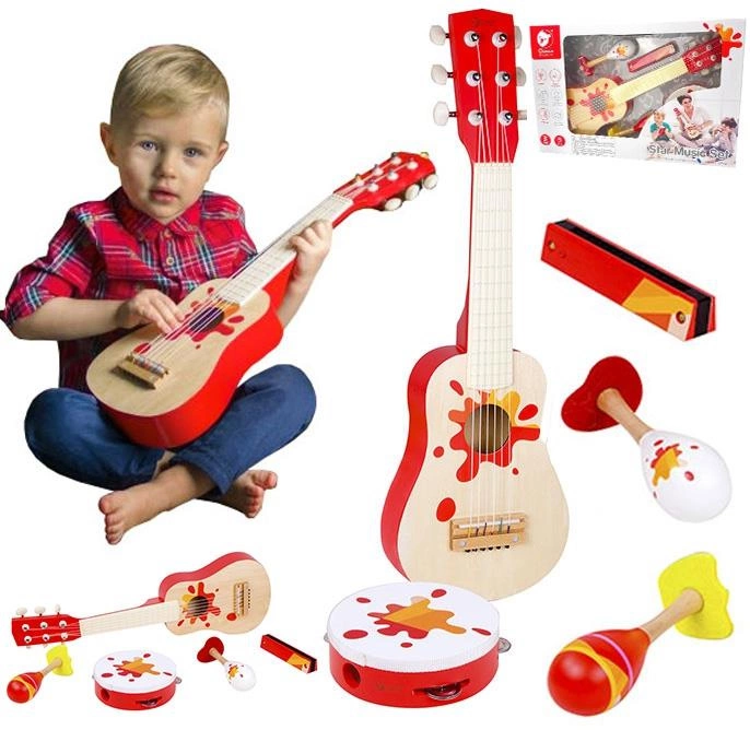 Zestaw Muzyczny Gitara Tamburyn + Akcesoria Classic World to świetny pomysł na prezent dla każdego fana muzyki. Nauka gry sprawi frajdę i wspomoże w rozwijaniu talentów. Zabawki są odzwierciedleniem prawdziwych instrumentów co sprawi, iż mały artysta chętniej rozpocznie naukę. Gra na instrumentach wpływa pozytywnie na rozwój maluchów poprzez obcowanie z muzyką. Gitara została wykonana z wysokiej jakości materiału. Do pomalowania wykorzystano nietoksycznych lakierów, w pełni bezpiecznych dla dziecka.