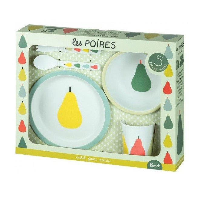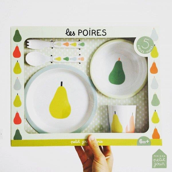Zestaw naczyń i sztućców dla dziecka, 5 el., Gruszki | Maison Petit Jour®