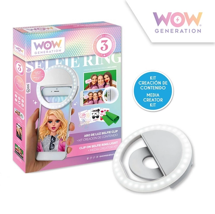 Każdy influencer potrzebuje najlepszych gadżetów, aby uzyskać świetne efekty. Dlatego, podobnie jak nasze dziewczyny WOW, Twoje dziecko musi wydobyć to, co najlepsze ze wszystkich tworzonych przez siebie treści. Ten zestaw do selfie jest do tego idealny. Pierścień świetlny trzyma się telefonu komórkowego za pomocą klipsa i ma 3 różne poziomy oświetlenia. Ponadto zestaw zawiera wiele akcesoriów, dzięki którym Twoje filmy i zdjęcia będą znacznie bardziej oryginalne i niepowtarzalne. Kompletny zestaw zawiera: