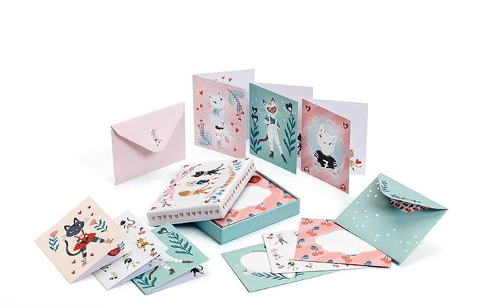 Część kolekcji z Lovely Paper Djeco, pudełko LUCILLE to uroczy zestaw pięknie zaprojektowanych kart okolicznościowych i kopert z efektami metalicznymi. Zestaw zawiera 10 kart okolicznościowych i 10 kopert z 5 różnymi motywami.