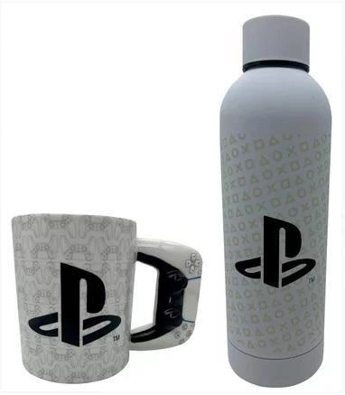 Dla miłośników PlayStation mamy ten zestaw z metalową butelką na wodę i kubkiem z uchwytem w kształcie kontrolera.