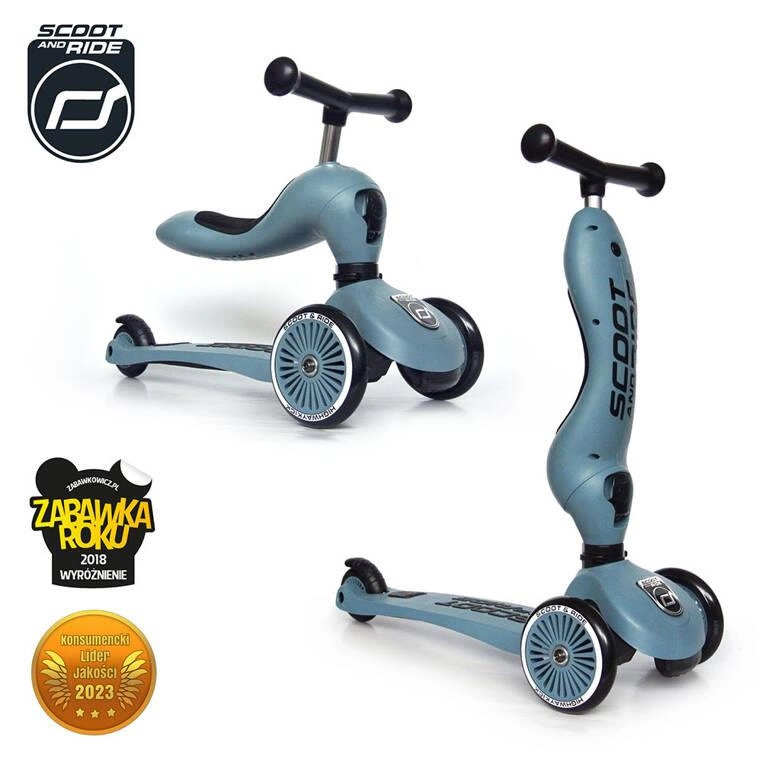 Zestaw SCOOTANDRIDE Highwaykick 1 2w1 Jeździk i hulajnoga 1-5 lat Steel + Kask XXS Steel