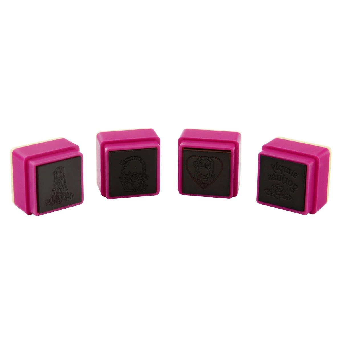 - Zestaw 4 uroczych pieczątek, samo tuszujących się, w plastikowych pudełeczkach.