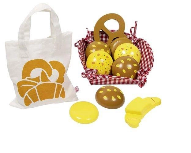 Zestaw z bawełnianą torbą i bawełnianym koszem "Pieczywo" goki sprawdzi się podczas zabawy w kuchni dla dzieci, czy też zabawy w sklep.