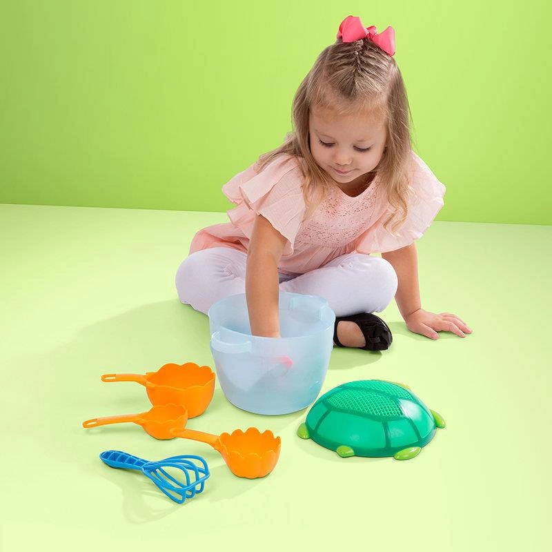 Wasz wakacyjny wypad nad morze zbliża się wielkimi krokami, a Ty nie masz jeszcze pomysłu na zorganizowanie czasu swojemu maluszkowi? Nie mogłeś trafić lepiej. Z tym uniwersalnym w zastosowaniu zestawem marki Melissa and Doug, Twoje dziecko nie zazna nudy nawet przez chwilę. Ten wyjątkowy, 7 elementowy zestaw składa się z wiaderka oraz akcesoriów o tematyce pieczenia, a jego pięknie ubarwione elementy od pierwszej chwili przykuwają wzrok dziecka. Motyw przewodni zabawki inspirowany jest morskimi stworzeniami. W wiaderku znajdują się m.in. miarki w kształcie muszli, trzepaczka w kształcie ośmiornicy czy też łyżka do mieszania krabów. Mieszanie, przesiewanie i temat pieczenia to ekscytujący motyw przewodni dla zabawek do piasku! Skorupa żółwia w kształcie miski służy właśnie jako przesiewacz. Ten interesujący zestaw zabawek do piasku, zachęca do koordynacji ręka-oko, ćwiczenia wyobraźni i zabawy na świeżym powietrzu. Obdarowany maluch, z pewnością szybko odwdzięczy Ci się szerokim uśmiechem oraz nowo nabytymi umiejętnościami. Wszystkie elementy zabawki zostały wykonane z wysokiej jakości materiałów, dzięki czemu kolory poszczególnych elementów są trwałe i odporne na promienie słoneczne.