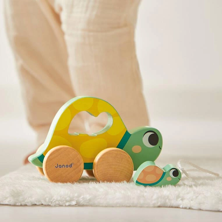• mama-żółw z małym żółwikiem-puzzlem do ciągnięcia – zachęca do stawiania pierwszych kroków;