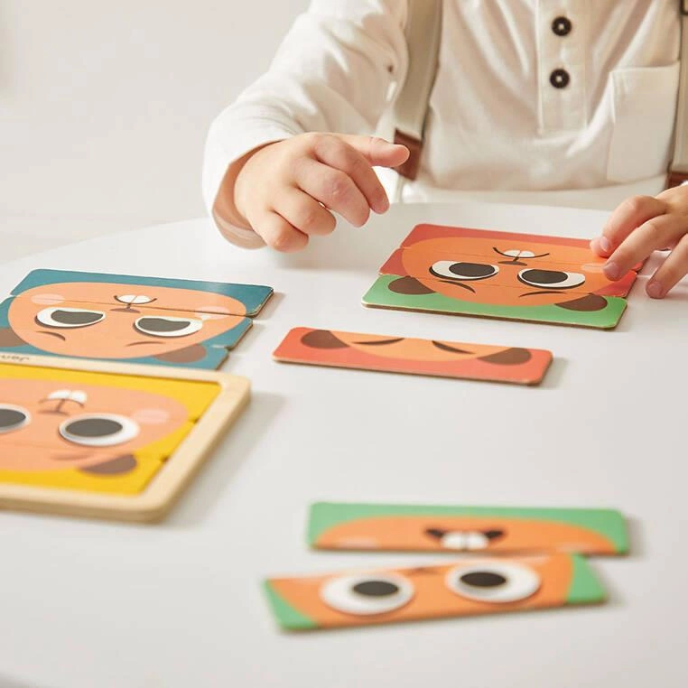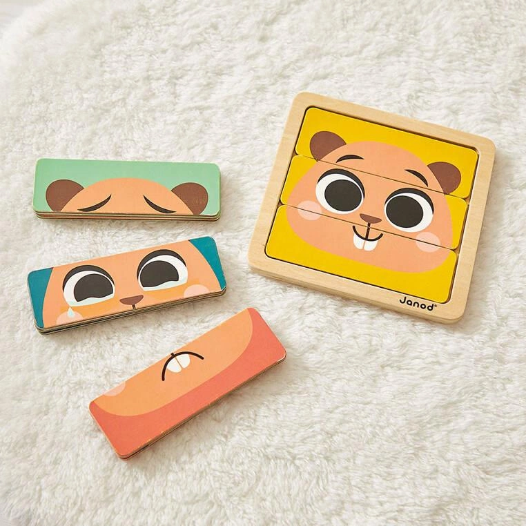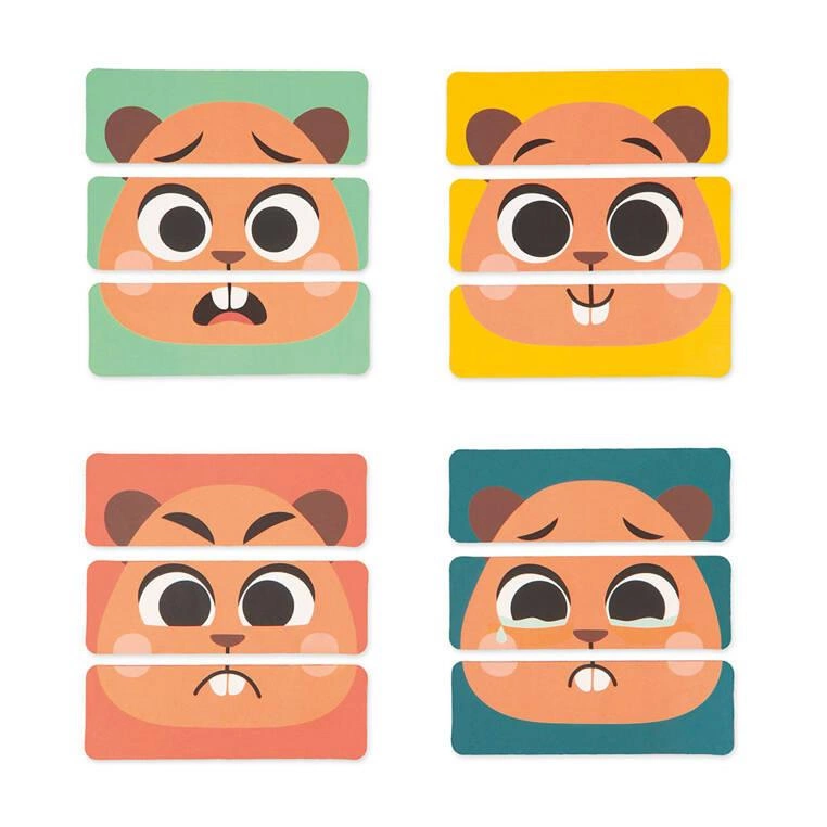 • układanka z 4 ilustracjami do ułożenia, przedstawiającymi 4 ważne emocje: radość, smutek, strach i złość – poszerza słownictwo i uczy rozpoznawania emocji.
