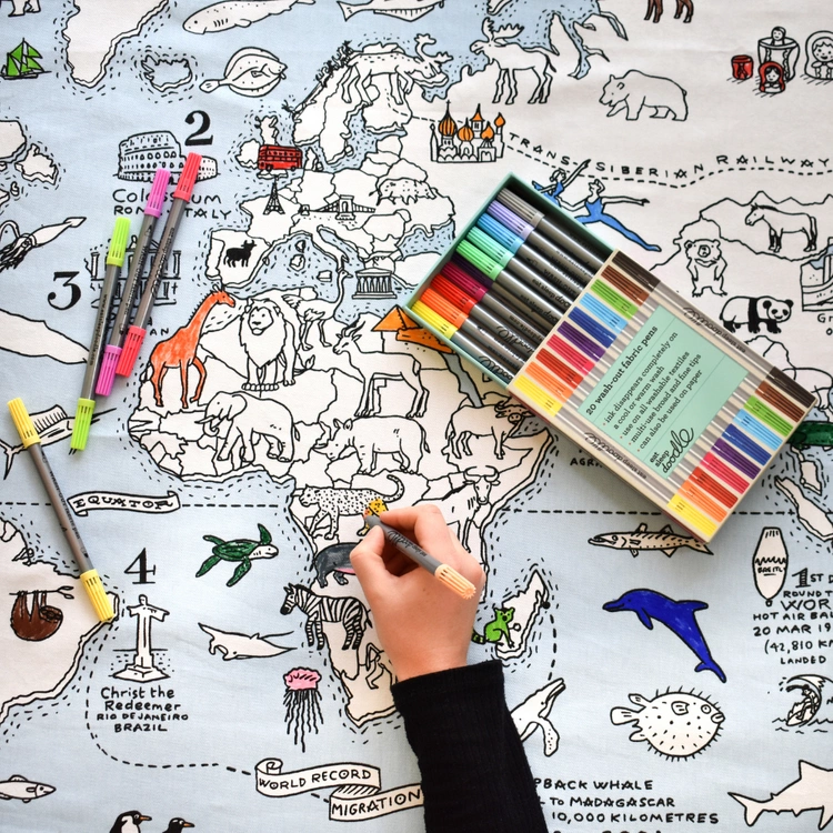 Multifunkcyjność – dedykowane do stosowania na spieralnych akcesoriach od eatsleepdoodle, ale także na wszystkich zmywalnych tkaninach i do kolorowania na papierze